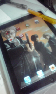 この画像のはiPad用の壁紙のサイズじゃないので、今度自分でそのサイズに直してみよう。タテ持ち横持ちに対応するために、1024ピクセルの正方形にするんだそうです、iPad用壁紙。